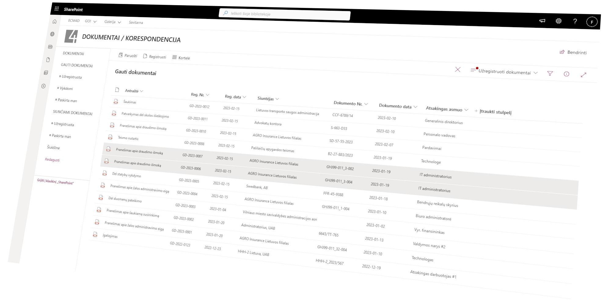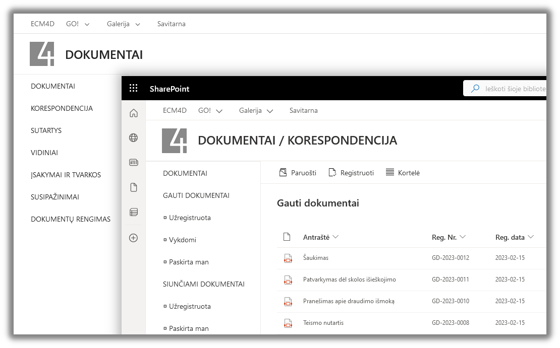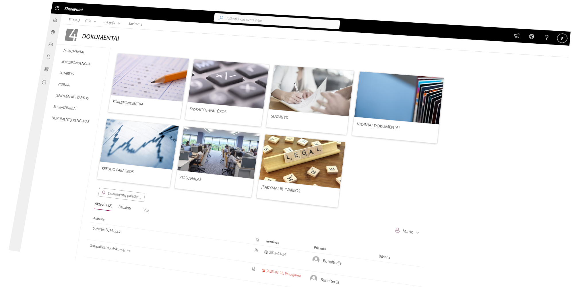 Modulis skirtas darbui su dokumentais įmonės viduje. Tai apima jų klasifikavimo, registracijos, apskaitos ir archyvavimo funkcijas. Komponentai įgyvendinti taip, kad tinkamai derėtų su standartiniu SharePoint Online dokumentų bibliotekos funkcionalumu.